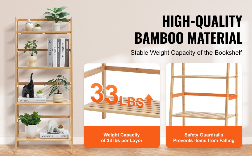 Hyllyssä on kestävä metallirunko ja MDF-hyllylevyt. Jokainen taso kestää enintään 22 lbs kuorman, joten hylly sopii hyvin sekä kirjoille että painavammille koriste-esineille. Rakenne tarjoaa vakaan ja pitkäikäisen säilytysratkaisun.