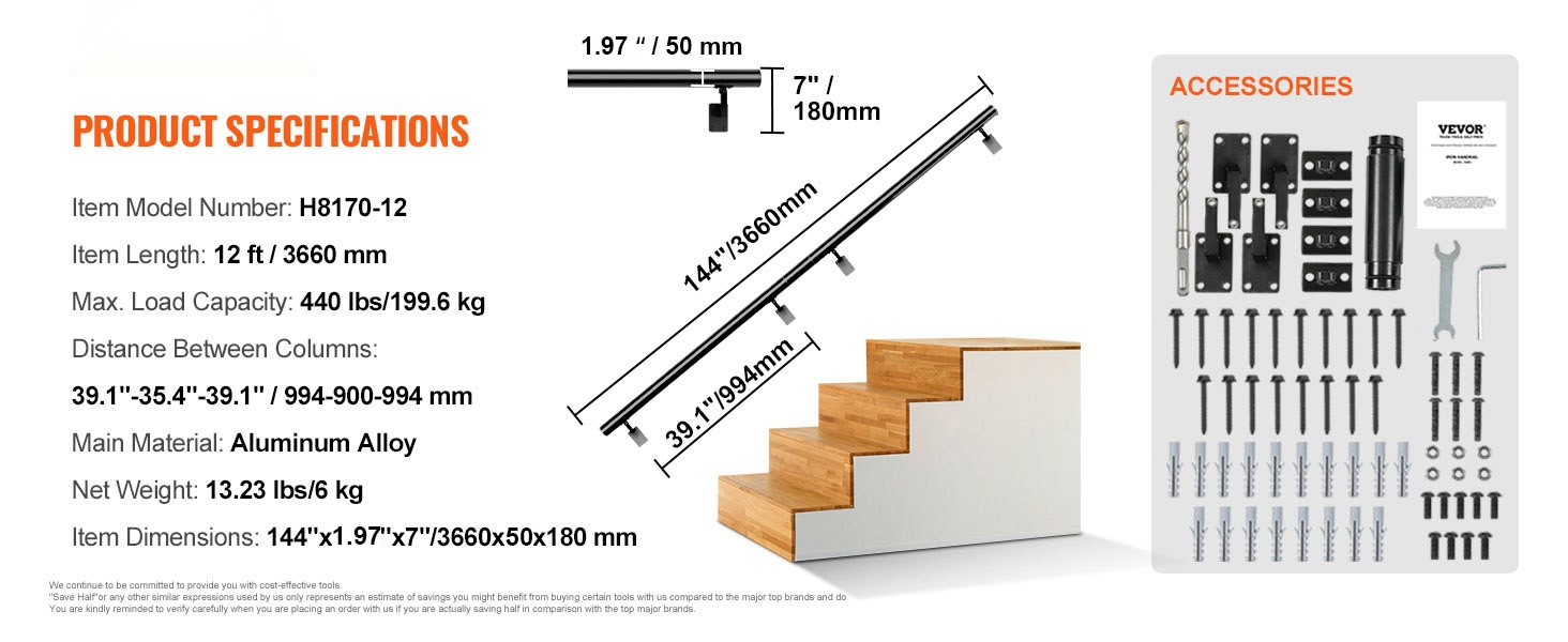 - Sopii 5 portaan ulkoportaisiin (säätövara, max portaan korkeus 24.6"/62.5 cm)