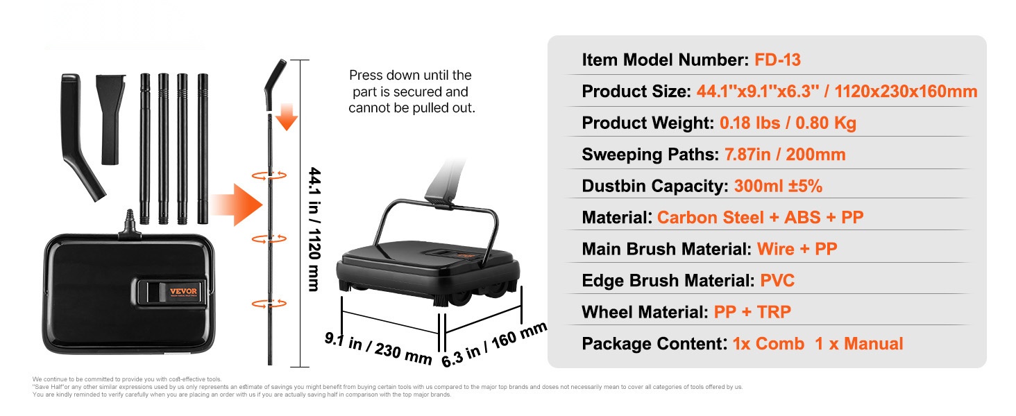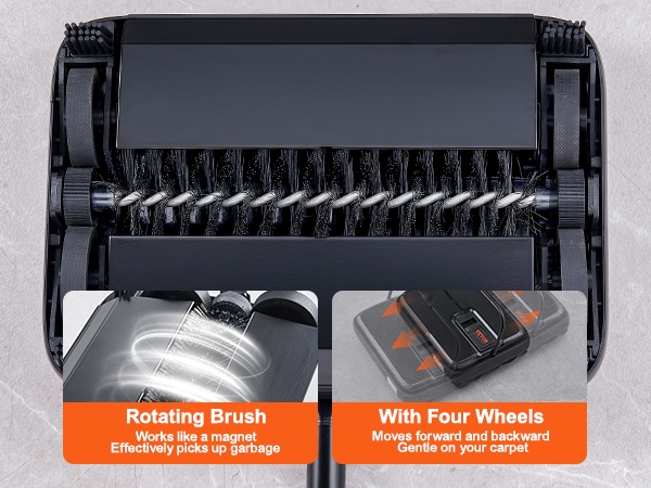 Tämä käsikäyttöinen mattoharja puhdistaa helposti ilman sähköä tai paristoja. Rullaharja kerää pölyn ja roskat matoista ja matoista tehokkaasti, joten se sopii hyvin kotiin, toimistoon ja muihin tiloihin.