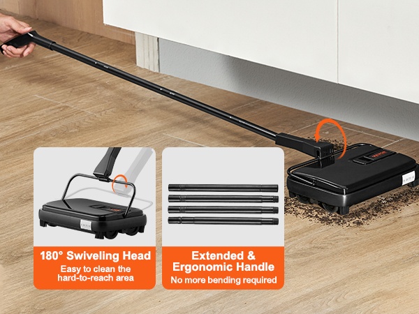 180 asteen kääntyvä pää helpottaa puhdistusta matalien huonekalujen, kuten sohvapöytien, sohvien ja sänkyjen alta. Pitkän varren ansiosta siivoaminen onnistuu ilman kumartelua.