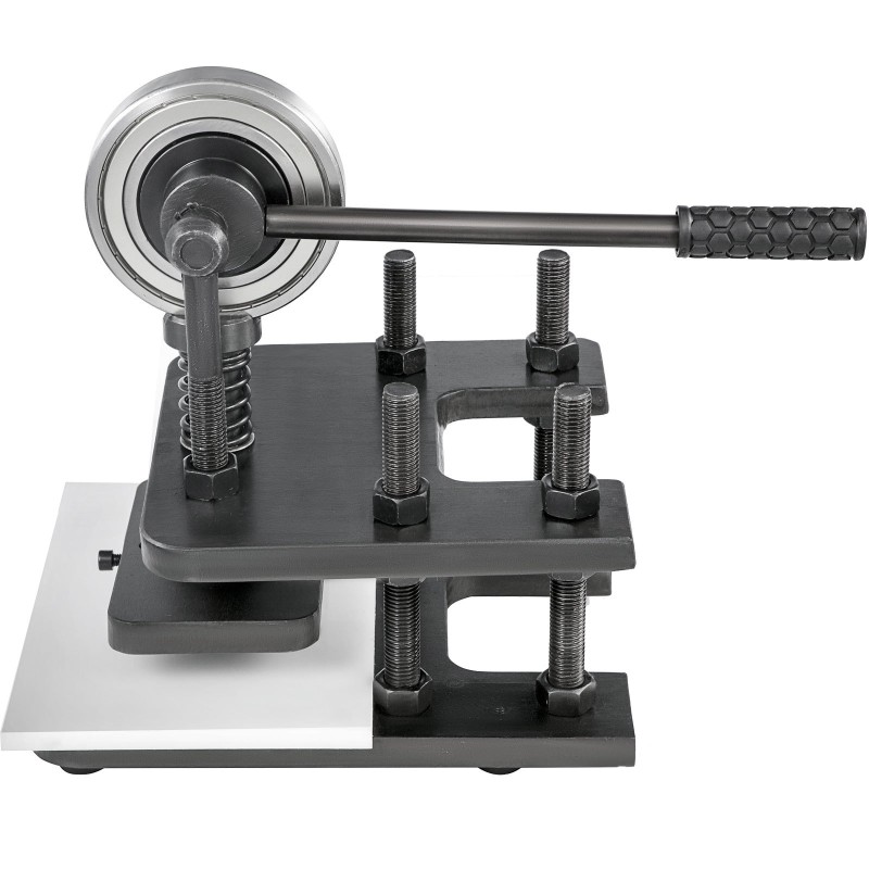 Mustapintainen käsikäyttöinen nahkaleikkuukone, jossa on 180x120 mm ylälevy. Soveltuu monenlaisille materiaaleille, kuten nahalle, tarramateriaaleille, muoville ja kumilevyille. Rakenne on valmistettu #45 kylmävedetystä teräksestä, ja se kestää jopa 1.5 tonnin puristusvoiman.