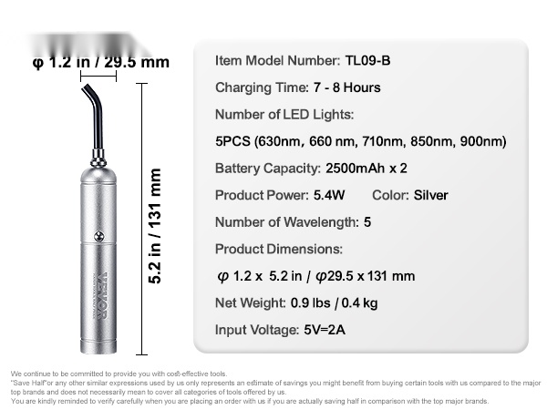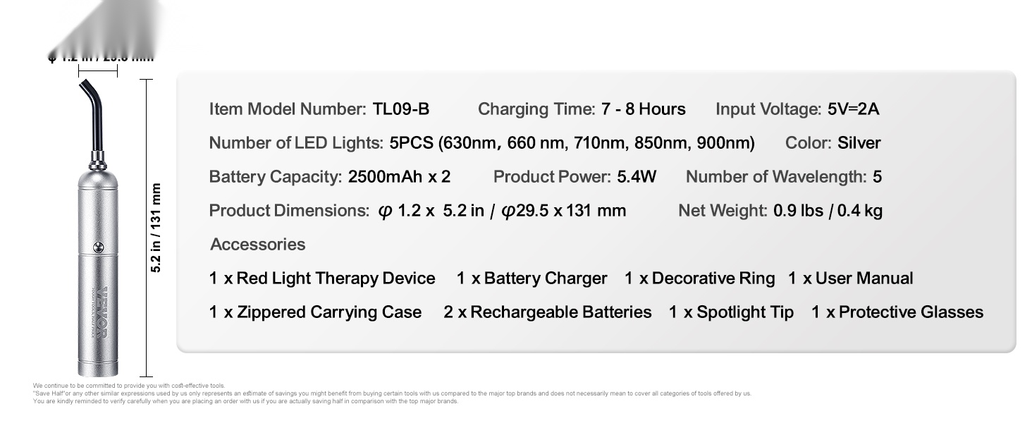 - Aallonpituudet: 630nm, 660nm, 850nm