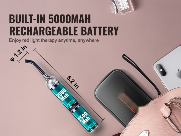 Kevyen ja helposti mukana kulkevan rakenteen ansiosta voit hyödyntää valoterapiaa lähes missä tahansa. Vahva 5000mAh akku mahdollistaa pitkän käyttöajan ja vähentää lataustarvetta, joten hoito on helppo liittää päivittäiseen rutiiniin.