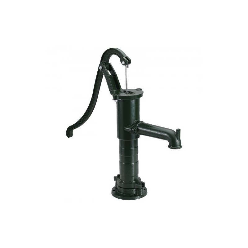 Vihreä valurautainen käsikäyttöinen kaivopumppu soveltuu pihan, puutarhan, maatilan tai varajärjestelmän vedenottoon. Pumppu toimii männällä ja nostaa pohjaveden jopa 7 m korkeudelle, joten se auttaa varmistamaan veden saannin myös ilman sähköä.