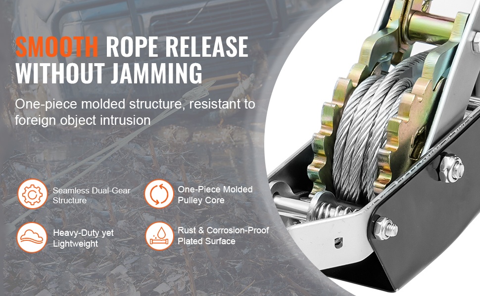 Perinteisiin, helposti jumittuviin hammaspyöräpinorakenteisiin verrattuna tämä talja hyödyntää yksiosaista kaksoisvaihdetta. Se vähentää jumittumisen ja ruostumisen riskiä, helpottaa vaijerin vapauttamista ja parantaa lujuutta sekä käyttömukavuutta.