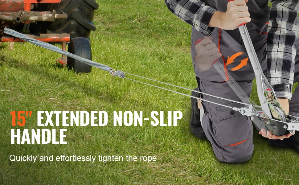 Pidempi kahva helpottaa vaijerin kiristämistä ja mahdollistaa suuremman vetovoiman pienemmällä voimankäytöllä. Liukuesteellä varustettu kädensija parantaa pitoa, jotta työskentely pysyy hallittuna myös raskaissa tehtävissä.