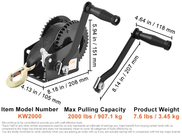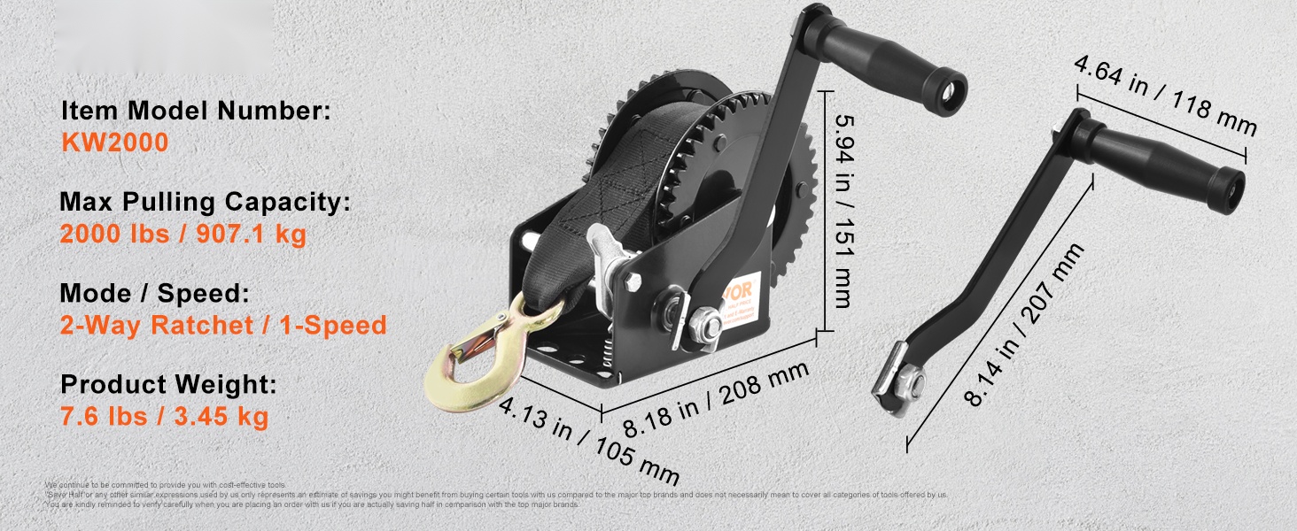 Käsivinssi 725,7 kg vetokyky 1005,8 cm polyesterihihna kaksisuuntainen räikkä veneille ja peräkärryihin