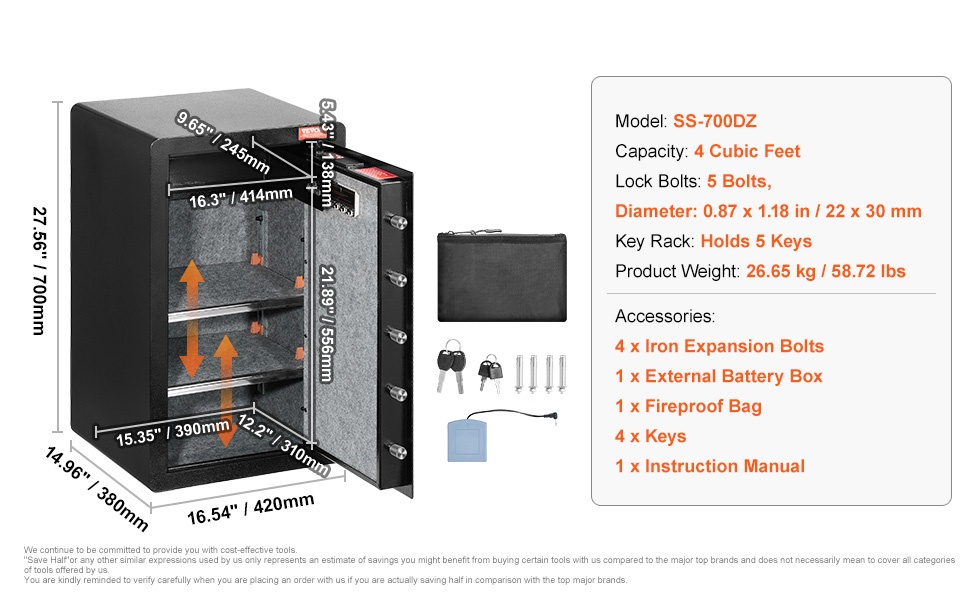 - Tuotteen ulkomitat: 700 x 420 x 380 mm / 27.56 x 16.54 x 14.96 in
