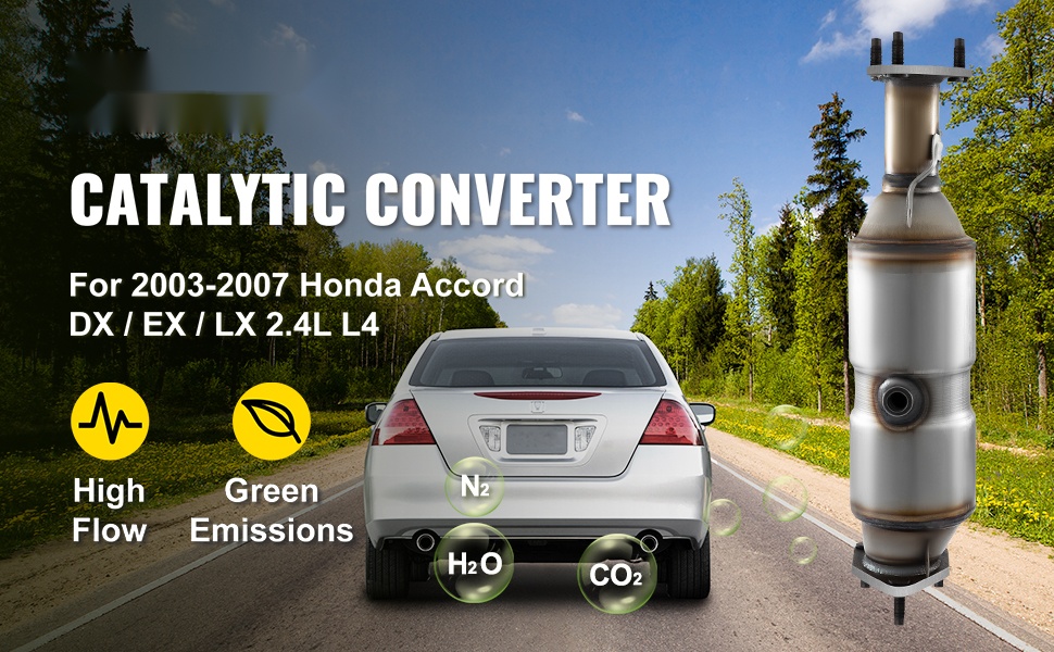Katalysaattori sopii 2003–2007 Honda Accord DX/EX/LX 2.4L L4 -malleihin ja auttaa parantamaan pakokaasujärjestelmän toimintaa. Rakenne on valmistettu kestävästä ruostumattomasta teräksestä, ja sisäinen kennorakenne puhdistaa pakokaasut tehokkaasti.