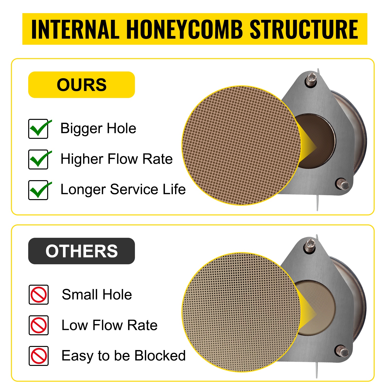 Katalysaattori on suunniteltu vastaamaan tai ylittämään alkuperäiset vaatimukset. Korkean virtauksen rakenne auttaa parantamaan muunnostehokkuutta ja moottorin suorituskykyä rajoittamatta virtausta liikaa.