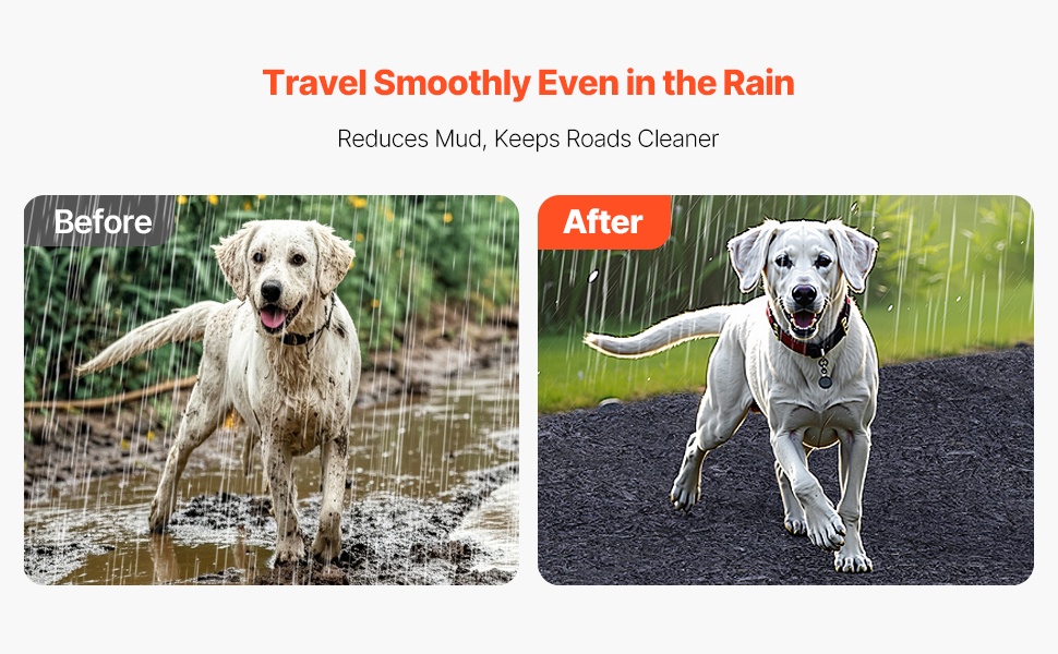 - Auttaa estämään mudan ja roiskeiden syntymistä sateella
