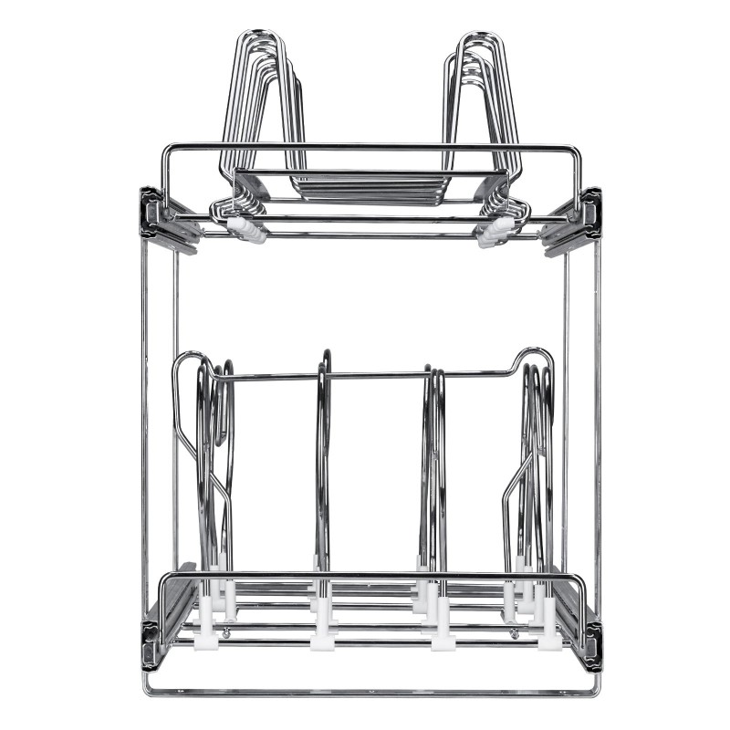 Tämä kattila- ja pannuhylly on suunniteltu maksimoimaan kaappitilan käytön. Se sopii hyvin kattiloiden, paistinpannujen, uunipeltilautasten, leikkuulautojen, kansien ja muiden keittiötarvikkeiden säilytykseen. Hiiliteräksestä valmistettu hylly liukuu helposti ulos, jolloin pääset käsiksi sisältöön vaivattomasti.