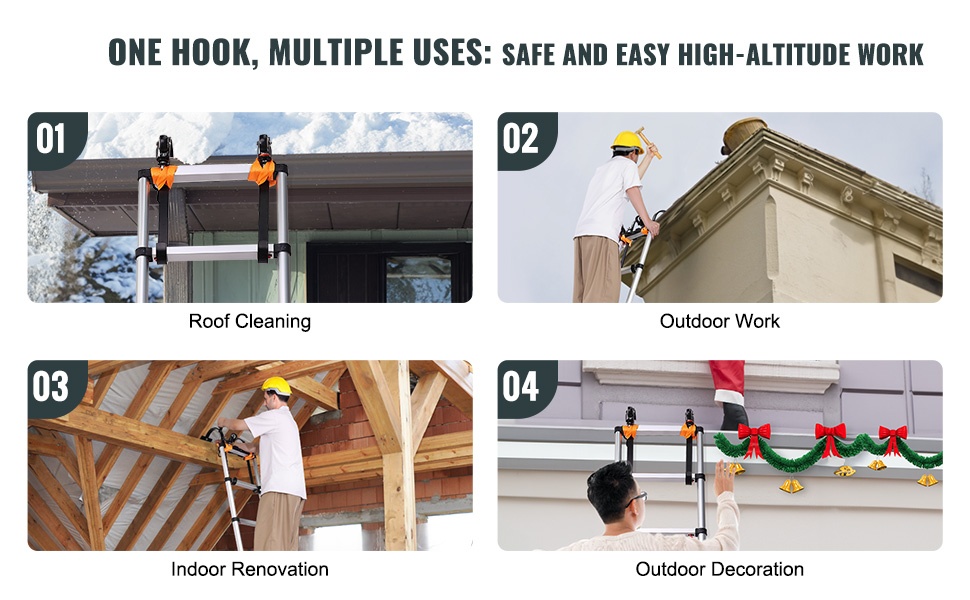 Koukku soveltuu esimerkiksi katon puhdistukseen, rännien huoltoon, ulkoverhouksen tarkastuksiin ja muihin kattotöihin. Ei suositella katoille, joissa on harjatiivisteet tai harjatuuletus.