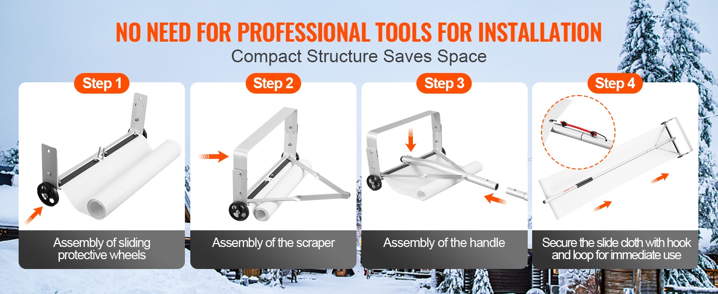 Ilman monimutkaisia vaiheita tai erityisosaamista voit koota kattolumiharjan nopeasti. Se tekee talvisesta lumenpoistosta vaivattomampaa ja sujuvampaa.