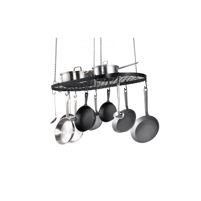 Hiiliteräksestä valmistettu runko on paksu ja tukeva, mikä parantaa kantokykyä ja vähentää taipumista kuorman alla. Ruosteenkestävä pinta helpottaa puhdistusta ja ehkäisee rasvan ja lian kertymistä, joten keittiö pysyy siistimpänä. Käyttäjäystävällinen muotoilu tekee välineiden ripustamisesta ja ottamisesta nopeaa, mikä sujuvoittaa ruoanlaittoa.