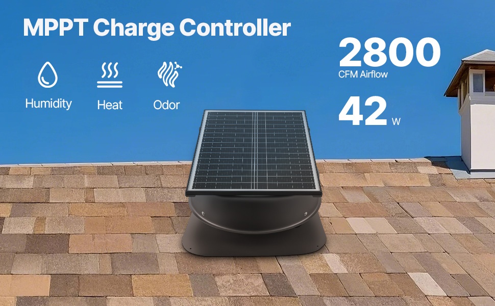 Aurinkokattotuulettimessa on tehokas monikiteinen piipaneeli, joka ei vaadi ulkoista virtalähdettä aurinkoisina hetkinä. Säädettävä paneelikulma auttaa hyödyntämään auringonvalon mahdollisimman hyvin, ja rakenne on suunniteltu kestämään rakeita, salamoita ja säärasitusta.