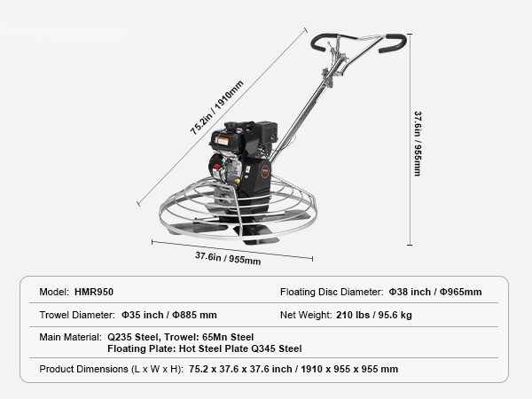 Tehokas moottori auttaa suorittamaan betonin viimeistelytyöt sujuvasti. Rakenne on suunniteltu pitkäaikaiseen käyttöön, ja laite toimii yhdessä monien markkinoilla olevien viimeistelyterien kanssa, mikä helpottaa huoltoa ja terien vaihtoa.