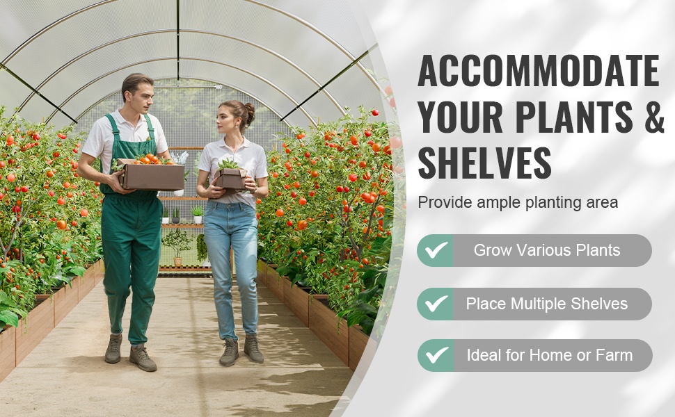 Vahvistetuista galvanoiduista teräsputkista ja kestävällä PE-muovilla valmistettu tunnelikasvihuone tarjoaa hyvän lujuuden ja pitkäikäisyyden. Tilava sisätila sopii monenlaiseen viljelyyn ja auttaa kasveja kasvamaan suojatussa, miellyttävässä ympäristössä.