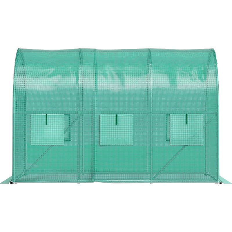Tunnelimallinen käveltävä kasvihuone tarjoaa suojaisan kasvuympäristön vihanneksille, kukille ja taimille. Vahvistettu sinkitty teräsrunko, parannettu PE-peite ja 6 verkkoikkunaa auttavat säätämään lämpöä ja ilmanvaihtoa eri vuodenaikoina.