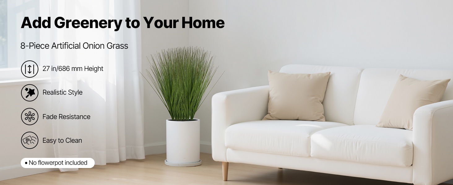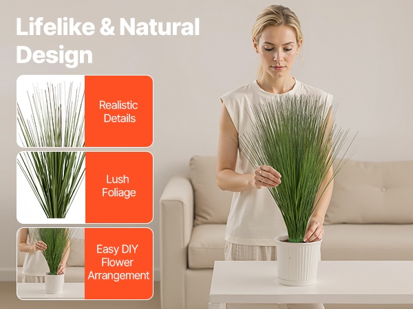 Tämä 1194 mm korkea keinotekoinen kaislakukka- ja heinäkasvi luo luonnollisen, vihreän tunnelman ilman kastelua tai hoitoa. Aidonnäköinen ulkonäkö ja yksityiskohtainen viimeistely tekevät siitä helpon ratkaisun tiloihin, joihin halutaan vihreyttä ja viihtyisyyttä ympäri vuoden.