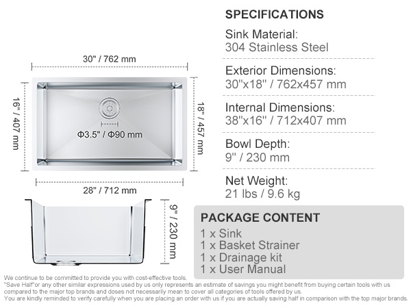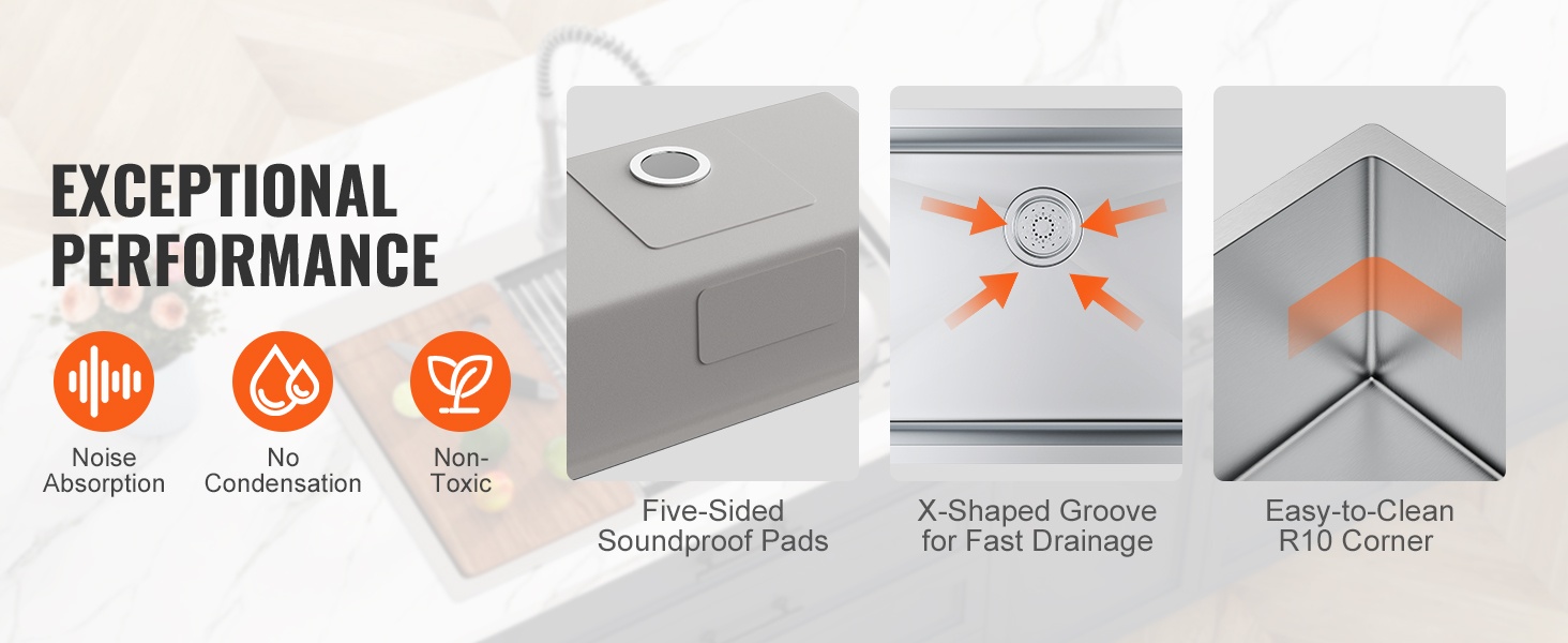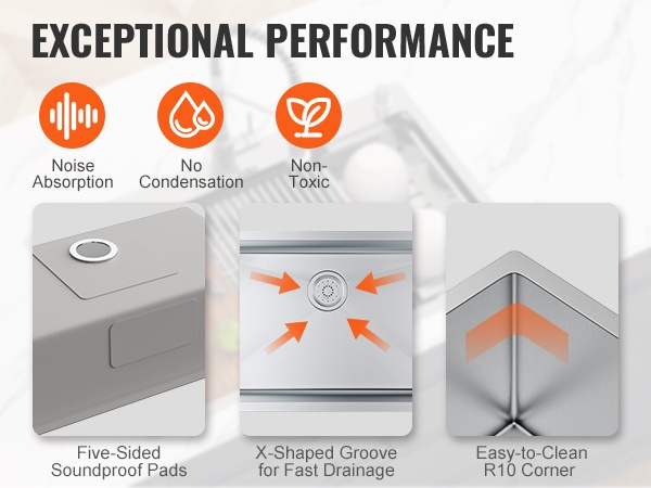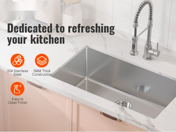 Tämä keittiöallas on valmistettu korkealaatuisesta 304-ruostumattomasta teräksestä, joka kestää hyvin kosteutta, roiskeita ja päivittäistä käyttöä. Altaan tukeva rakenne ja tarkkaan viimeistellyt yksityiskohdat tekevät siitä toimivan ratkaisun keittiöön, kodinhoitohuoneeseen, kellariin, pihabaarille, ravintolaan tai vaikkapa asuntoautoon.