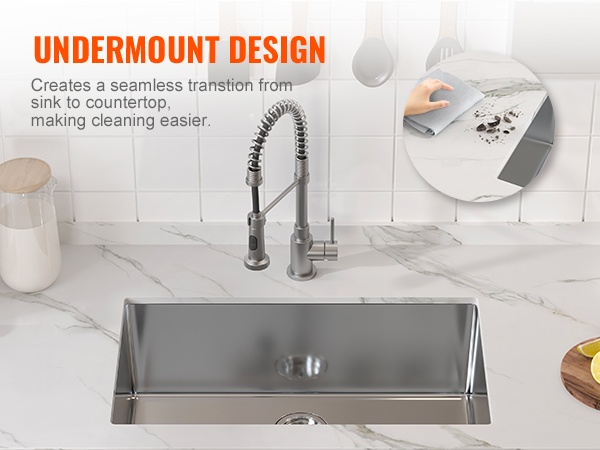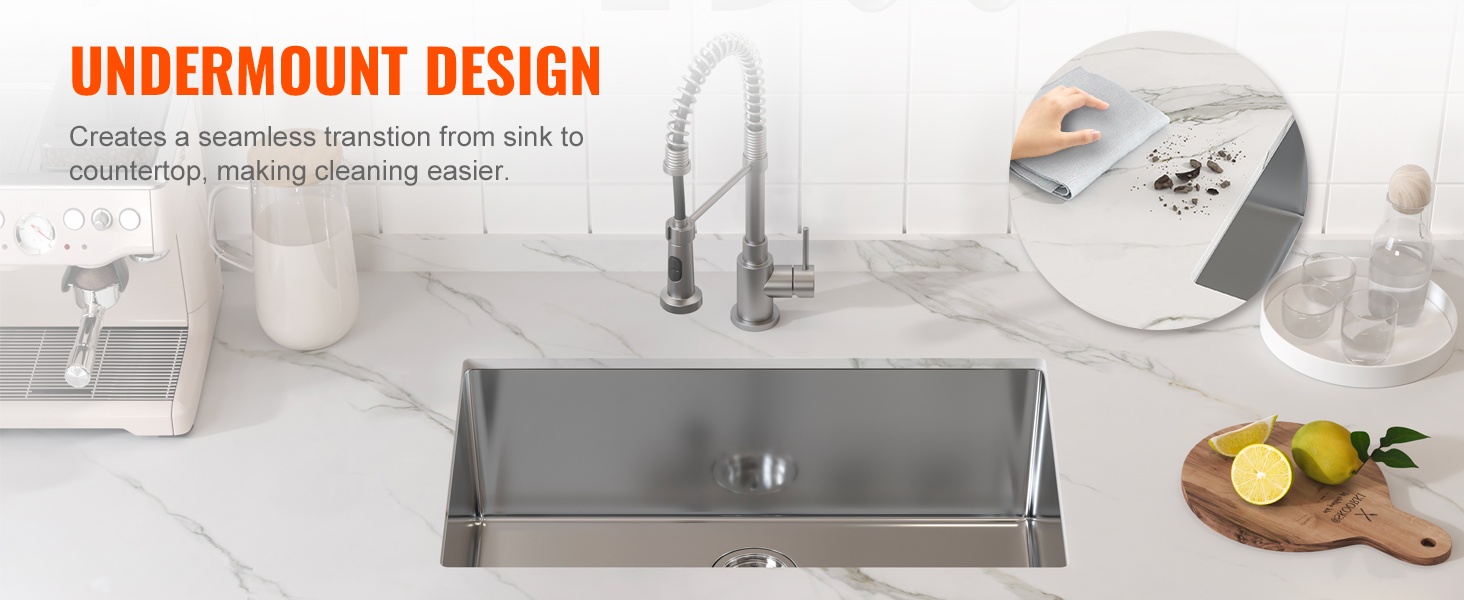 - Upotettava / alta-asennettava (undermount) asennustapa helpottaa tasojen puhtaanapitoa.