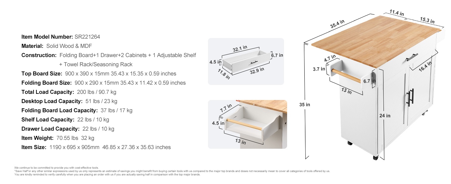 - Tilava säilytyskaappi, laatikko, mausteteline ja pyyheteline pitävät keittiötarvikkeet järjestyksessä.