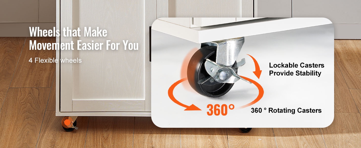 Pyörällisessä keittiöpöydässä on neljä hiljaista pyörää, jotka vähentävät liikuteltaessa syntyvää ääntä. Vaunua voi rullata paikasta toiseen häiritsemättä muita.