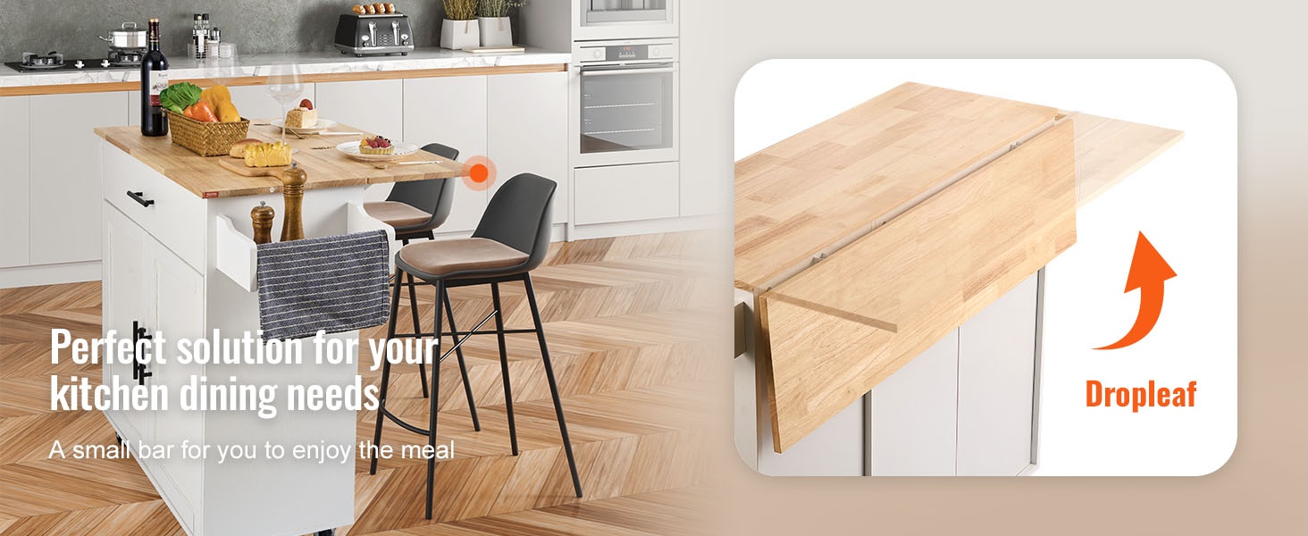Monikäyttöinen keittiösaareke pyörillä ja massiivipuutasolla
