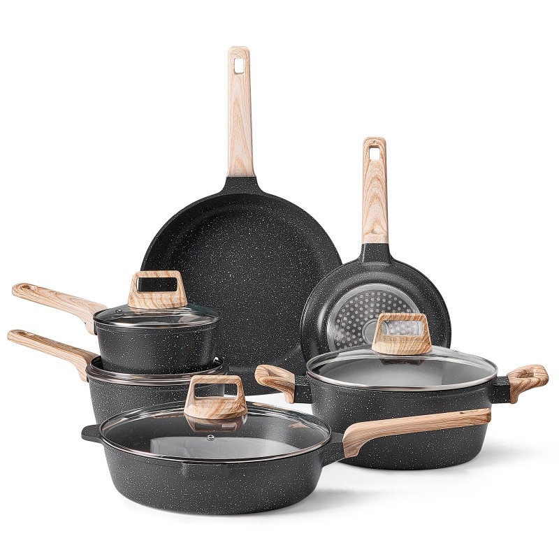Keitto- ja paistosetti 17-osainen granittipinnoitettu induktiolle musta