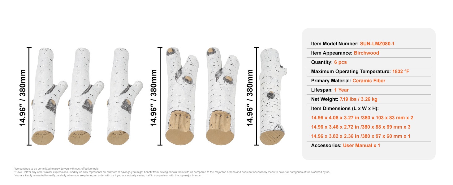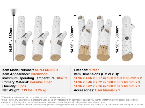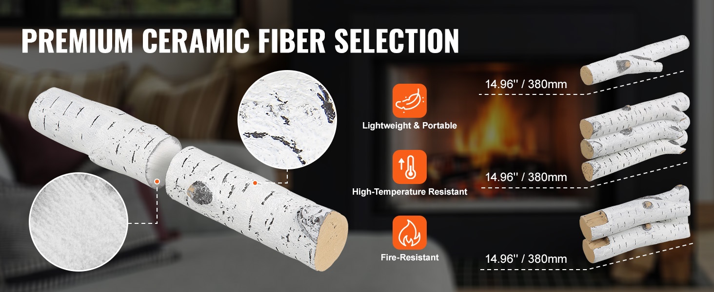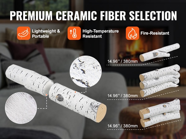 Keraamikuituiset koivupuut 6 kpl kaasutakkaan sisä ja ulkokäyttöön