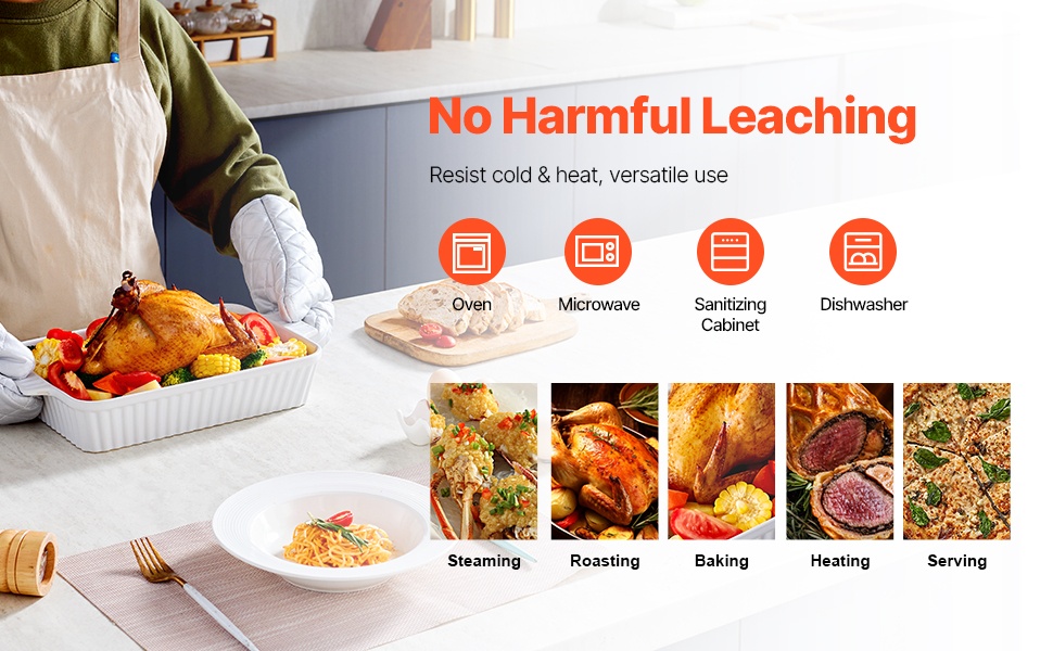 Vuoka on suunniteltu kestämään sekä korkeita että matalia lämpötiloja. Se sopii erinomaisesti esimerkiksi riisi- ja pastavuokiin, paahdettuihin lihoihin ja kasviksiin sekä erilaisiin laatikko- ja gratiniruokiin. Voit käyttää samaa vuokaa ruoan kypsennykseen, säilytykseen ja tarjoiluun.