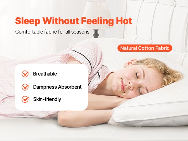 Luonnollinen puuvillakangas on ihoa vasten miellyttävä, pehmeä ja hengittävä. Se auttaa pitämään tyynyn tuntuman kuivana ja raikkaana ympäri vuoden.