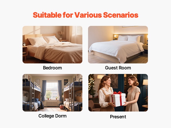 Tyynysetti sopii hyvin makuuhuoneeseen, vierashuoneeseen tai opiskelija-asuntoon ja tuo mukavuutta erilaisiin tiloihin.