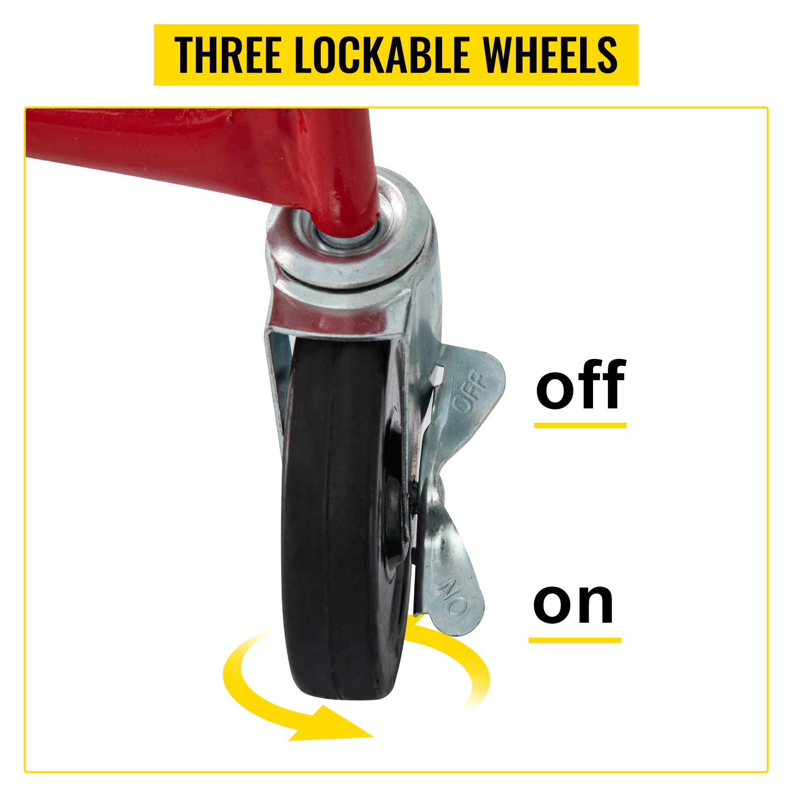 Kolme 360° kääntyvää, lukittavaa pyörää helpottavat nostimen siirtämistä työpisteeltä toiselle. Pyörät voidaan lukita, kun halutaan estää liikkuminen nostotyön aikana.