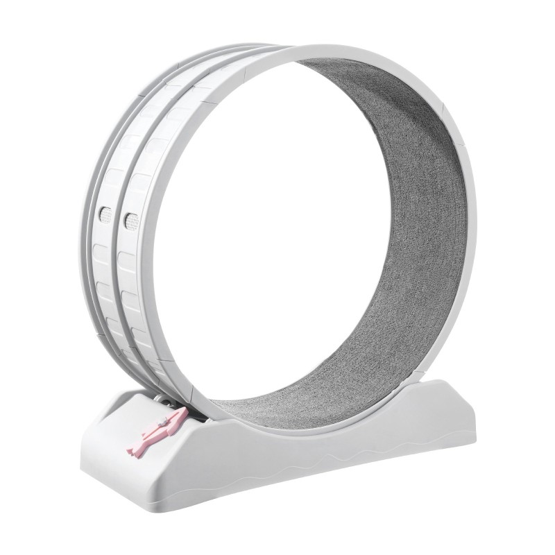 Tämä kissan juoksupyörä tarjoaa turvallisen ja miellyttävän tavan lisätä sisäkissan päivittäistä liikuntaa. Hiljaiset rullat tekevät käytöstä rauhallista, ja tilava sisäosa antaa kissalle runsaasti liikkumavaraa. Pyörän voi ottaa käyttöön myös lepopaikkana, kun lisäät päälle pehmeän alustan.