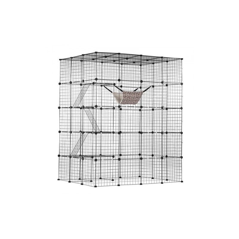 Neljän tason rakenne mahdollistaa häkin jakamisen erillisiin ruokailu-, lepo- ja leikkialueisiin. Tilava sisätila tarjoaa riittävästi tilaa kissan päivittäisiin tarpeisiin ja luo suuren leikkipaikan eri ikäisille ja -kokoisille kissoille.