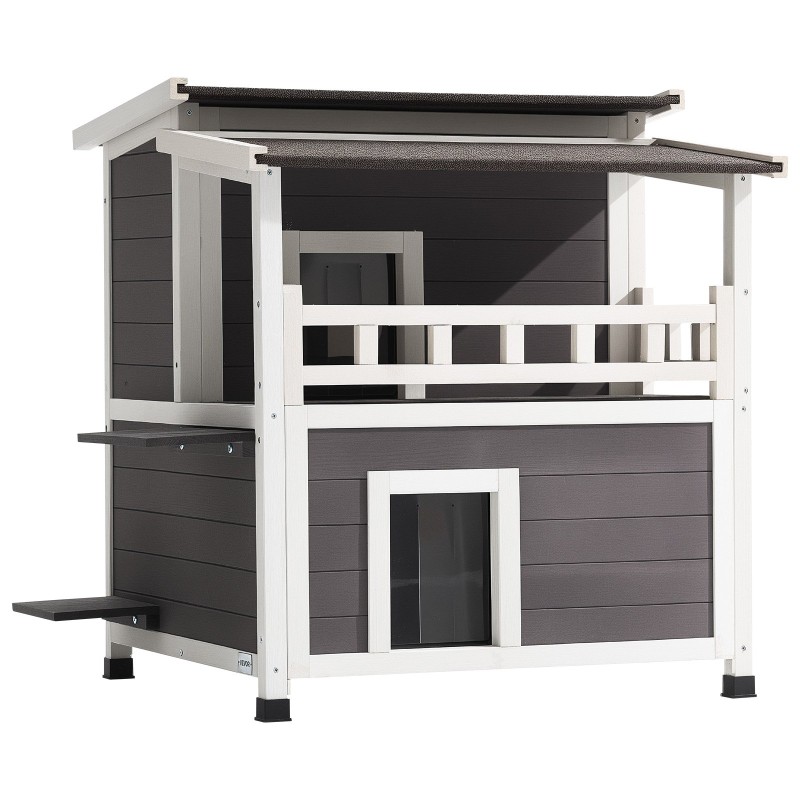 Kaksikerroksinen, eristetty puinen kissatalo tarjoaa suojaisan ja lämpimän paikan 1–3 kissalle ympäri vuoden. Neljällä sivulla oleva vaahtoeristys auttaa pitämään lämmön sisällä kylmällä säällä, ja tilava sisätila mahdollistaa kiipeilyn ja leikin.