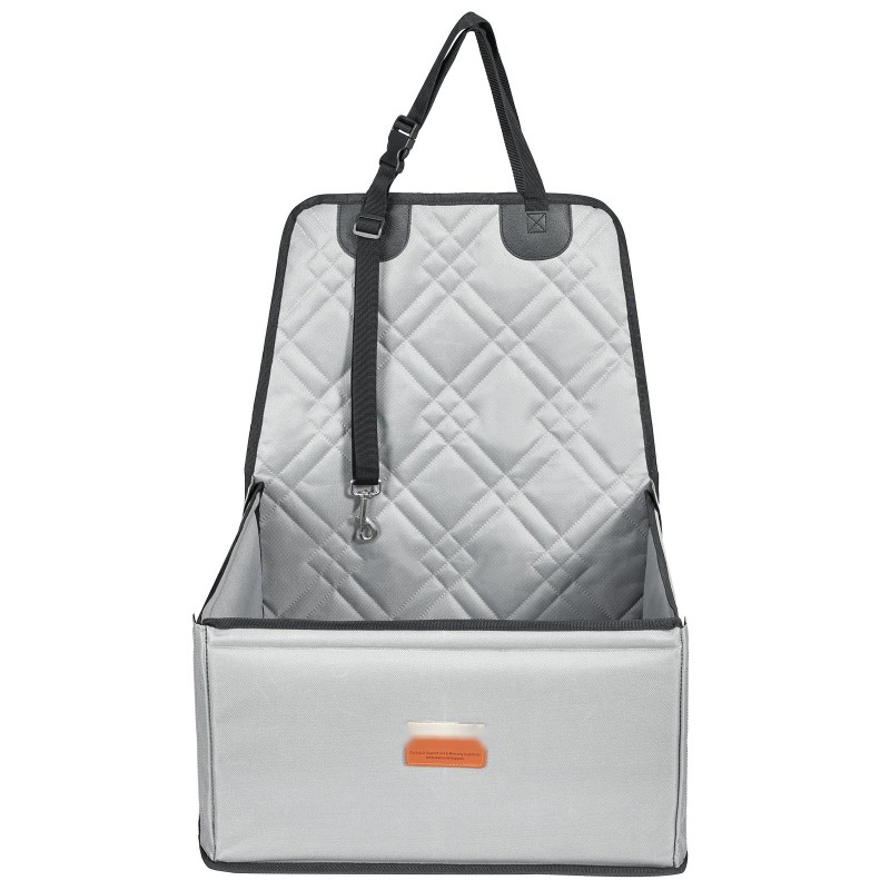 Korkea selkänoja tukee koiraa ja suojaa samalla auton istuimen pintaa. Irrotettava päällinen voidaan ottaa pois pesua varten ja käyttää uudelleen.