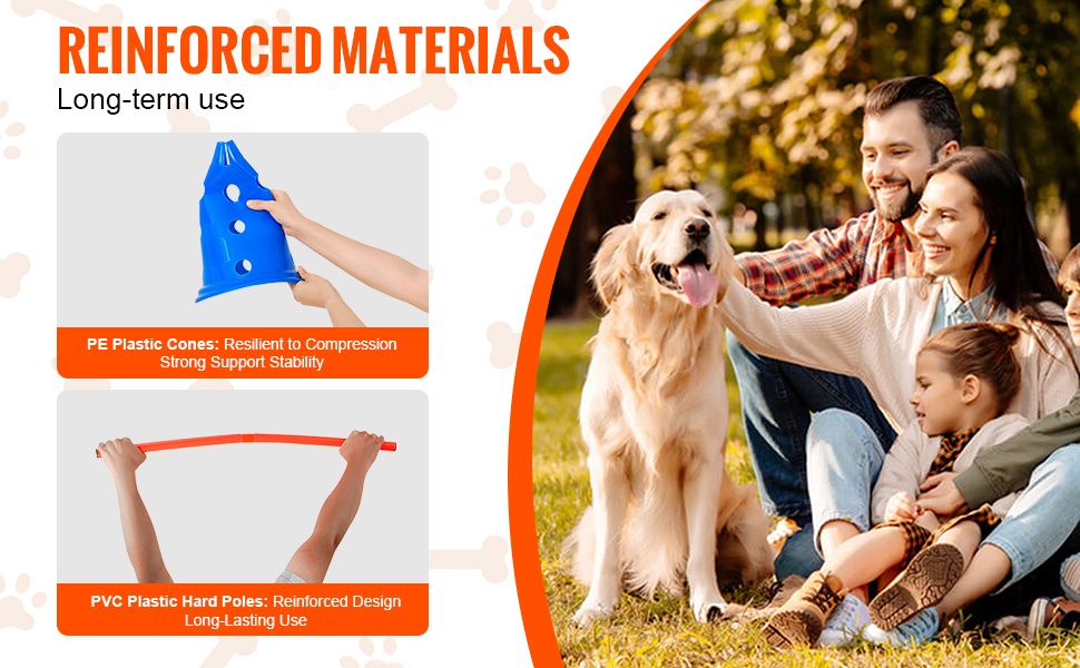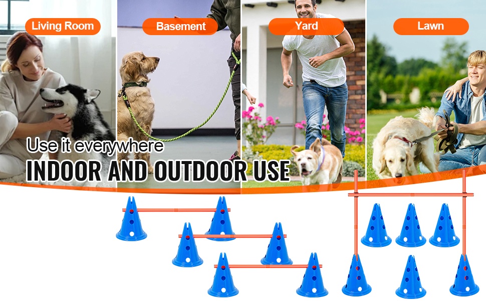 Tällä koirien agility- ja hyppysarjalla harjoittelet koirasi ketteryyttä ja tottelevaisuutta samalla, kun vahvistat suhdettanne. Vahvistettu rakenne tekee esteistä vakaampia, eivätkä ne heilu tai kaadu helposti harjoittelun aikana.