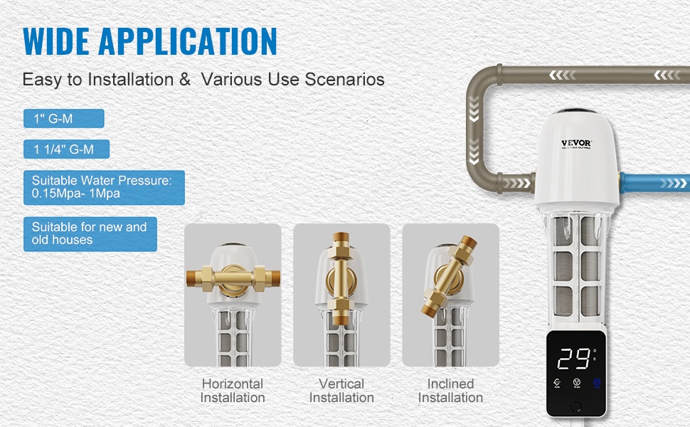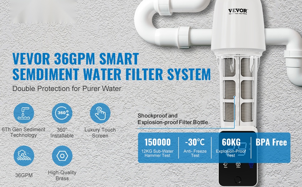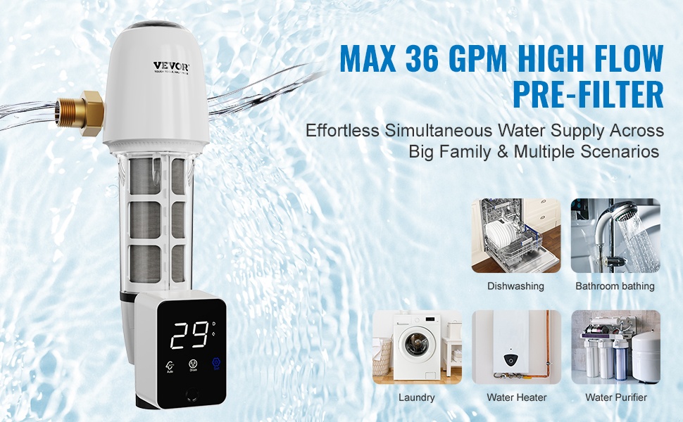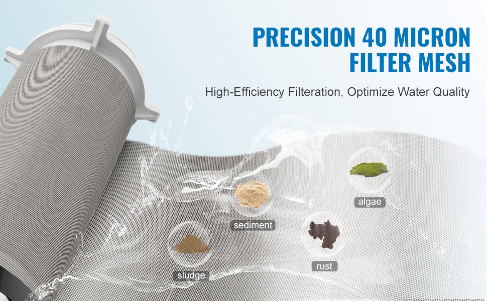 Koko talon esisuodatin kaivovedelle auttaa parantamaan veden laatua jo tulopisteessä ja suojaa näin talon muita vedenkäsittelylaitteita ja kodinkoneita. 40 μm suodatustarkkuus poistaa tehokkaasti sakkaa ja kiintoaineita, ja korkea 4 T/H virtausnopeus riittää useimpiin kotitalouksiin.