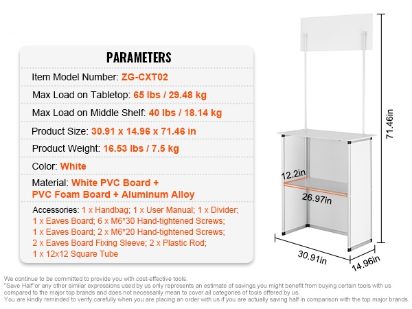 Kokoontaitettava messupöytä alumiinirunko MDF-taso 97,5 x 38,5 x 87 cm kaksitasoinen kantolaukulla