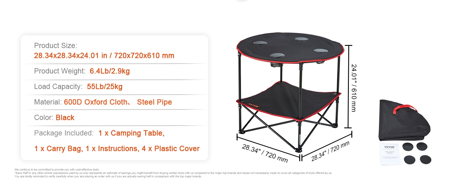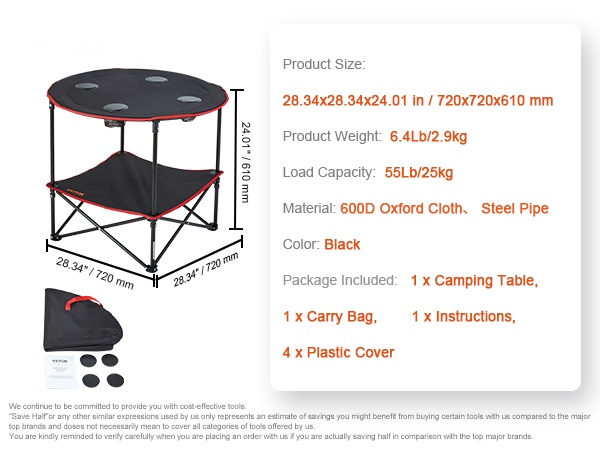 Tämä kokoontaitettava pöytä painaa vain 10 Lbs, joten sitä on helppo kantaa yhdellä kädellä. Älykäs taittomekanismi tekee säilytyksestä vaivatonta, ja pöytä vie vain vähän tilaa autossa tai varastossa.