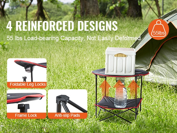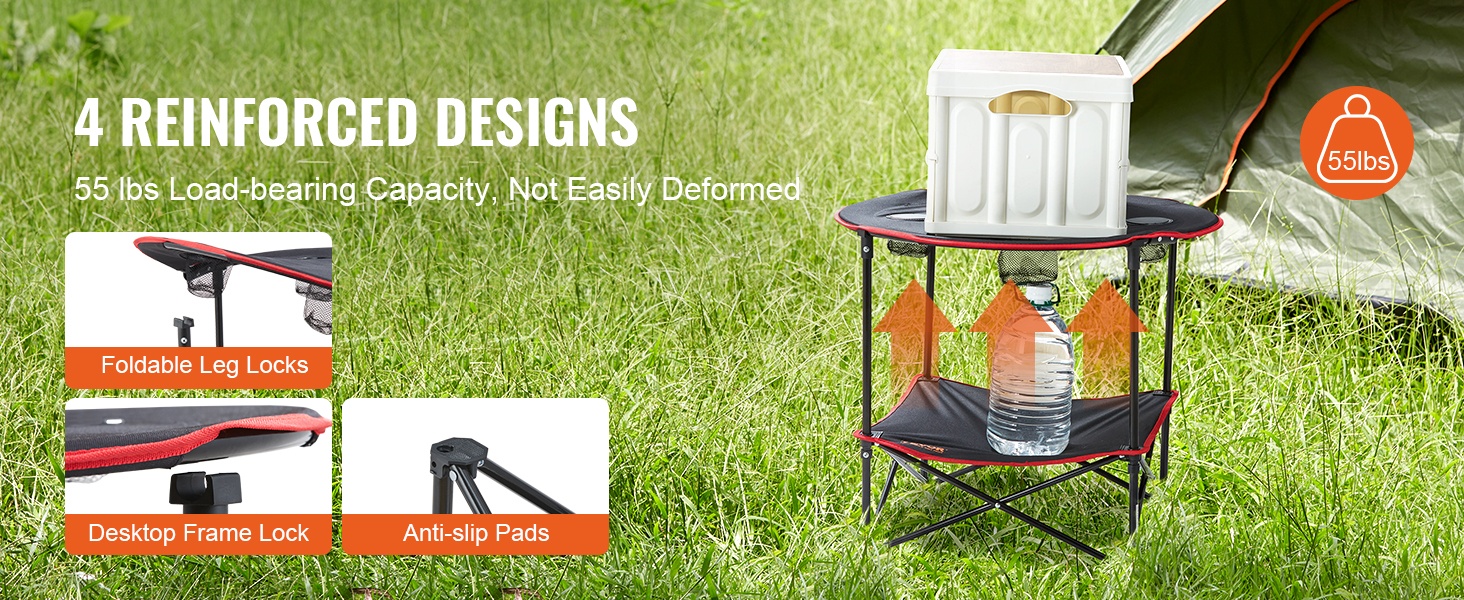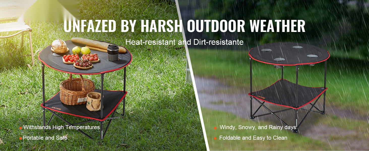 Pöytä tarjoaa miellyttävän ja kevyen ulkoilukokemuksen. Enimmäiskantavuus on 220 Lbs, joten sinun ei tarvitse huolehtia kannen tai jalkojen vääntymisestä tai muodonmuutoksista, vaikka sijoittaisit pöydälle painavia esineitä.