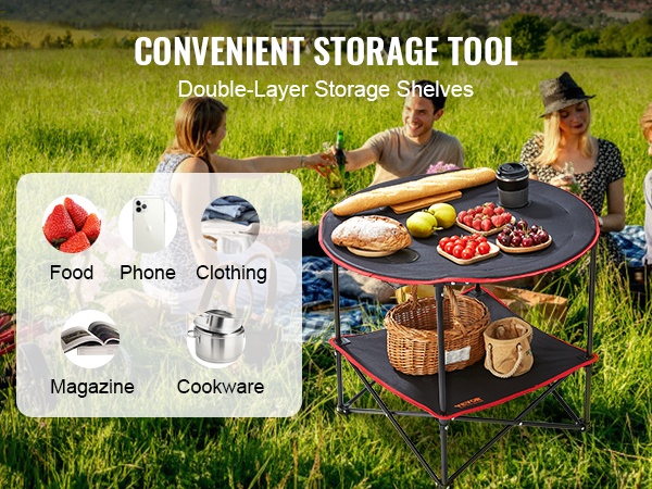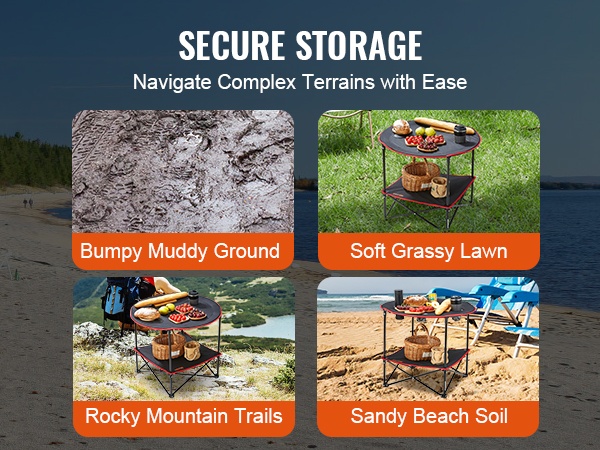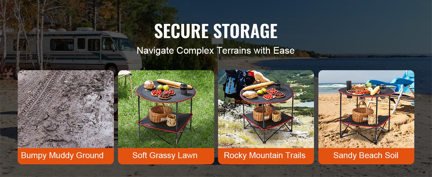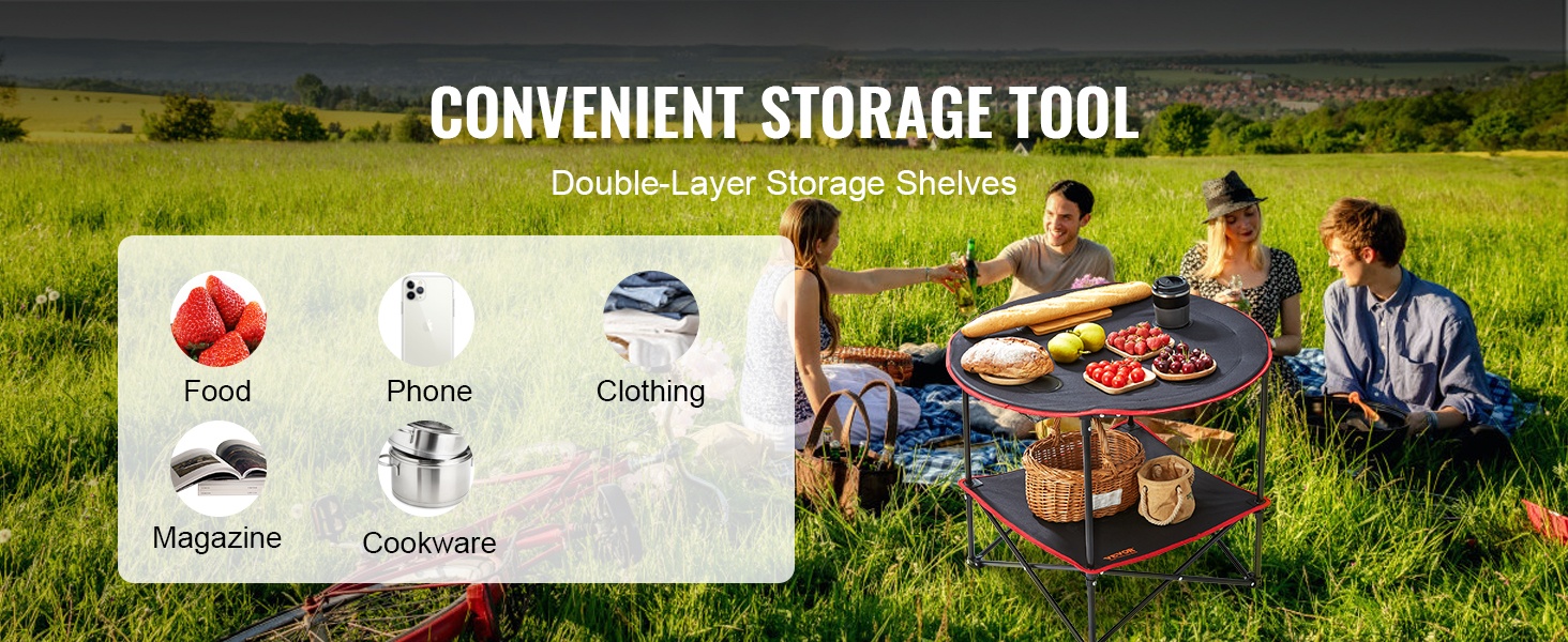Tämä kevyt ja helposti mukana kulkeva retkipöytä tekee ulkoilusta miellyttävämpää. Vahvan rakenteen ansiosta pöydän enimmäiskuormitus on 100 kg / 220 Lbs, joten raskaatkin esineet pysyvät vakaasti ilman, että kansi tai jalat taipuvat.