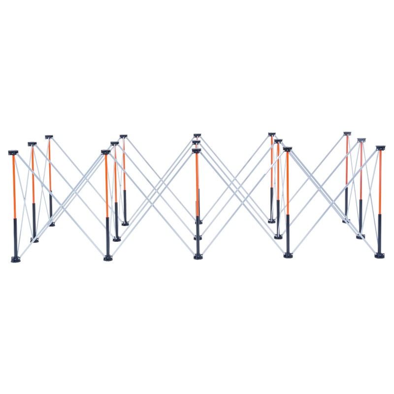 Työalustassa on 15 alumiiniseoksesta valmistettua jalkaa ja paksunnetut putket, jotka parantavat vakautta ja kantavuutta. Rakenne on suunniteltu niin, ettei alusta taivu tai romahda kuormituksen alla.