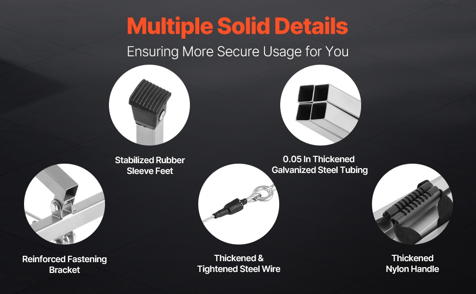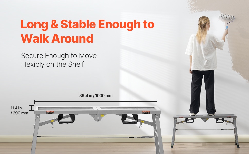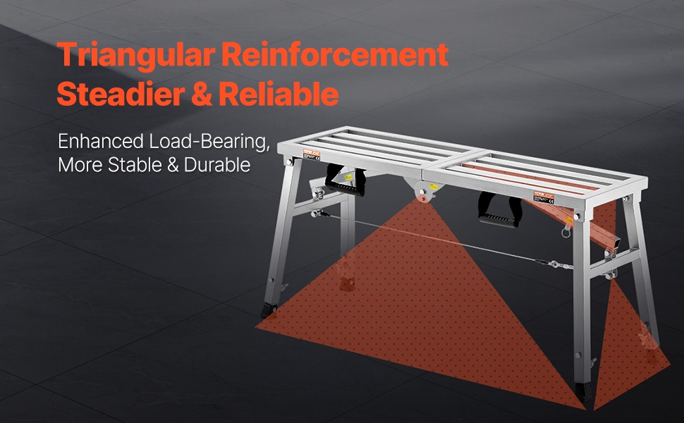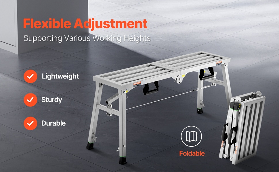 Lujuusteräksestä valmistettu, galvanoitu runko tarjoaa kestävän ja tukevan seisoma-alustan. Kantavuus jopa 400 lb riittää hyvin erilaisiin käyttökohteisiin, kuten maalaus-, asennus- ja huoltotöihin.