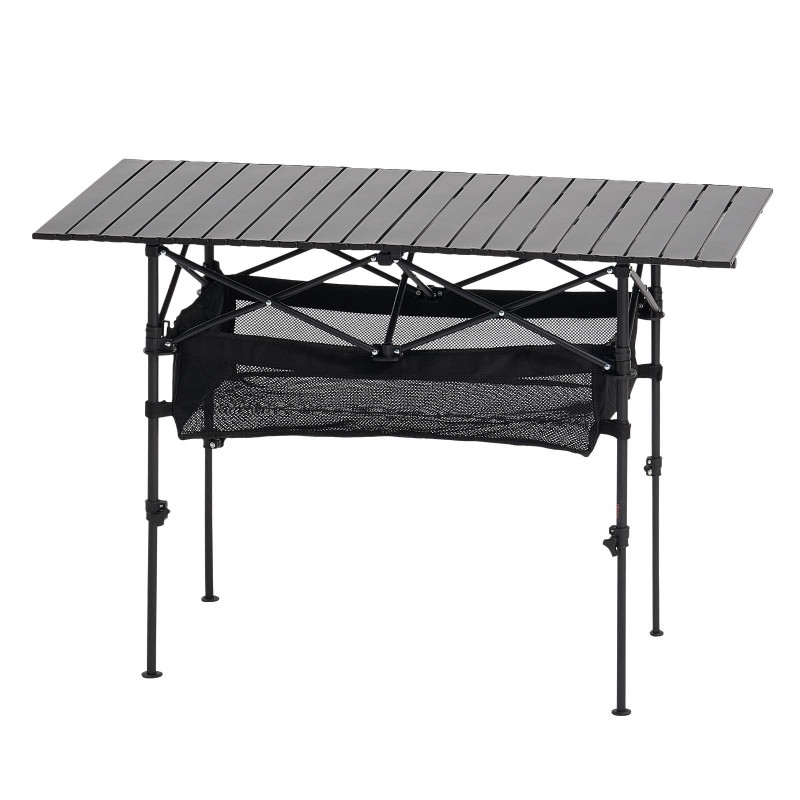 Kokoontaittuva retkipöytä ulkokäyttöön. Kevyt ja tukeva alumiininen pöytä, joka rullautuu kasaan ja on helppo kuljettaa mukana rannalle, leirintäalueelle, piknikille tai vaikkapa grillijuhliin. Pöydässä on säädettävä korkeus, suuri säilytyspussi ja erillinen kantopussi.