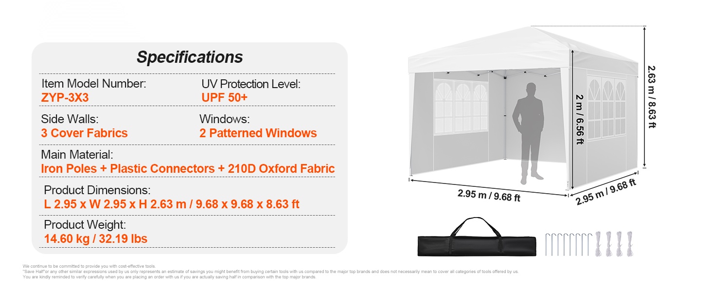 Katos on valmistettu kestävistä 1-tuumaisista rautaputkista ja ristikkomaisesta runkorakenteesta. Mukana tulevat kiinnitysköydet ja maakiilat parantavat vakautta ja turvallisuutta tuulisissa olosuhteissa.