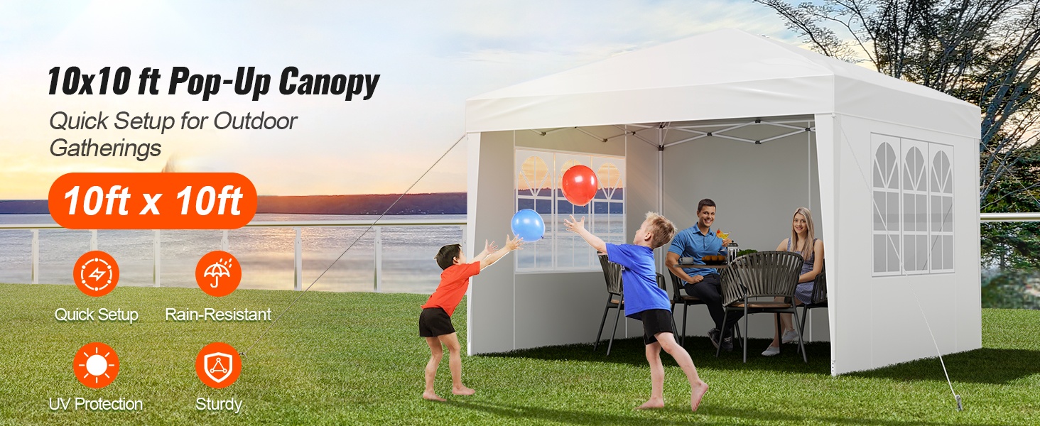 Tämä kokoontaittuva katos tarjoaa noin 200 sq. ft suojatun alueen, joka sopii esimerkiksi perhejuhliin, grillaukseen ja muuhun ulkoiluun. Yhden painalluksen mekanismin ansiosta teltta on helppo ja nopea pystyttää, joten voit käyttää enemmän aikaa itse tapahtumasta nauttimiseen.